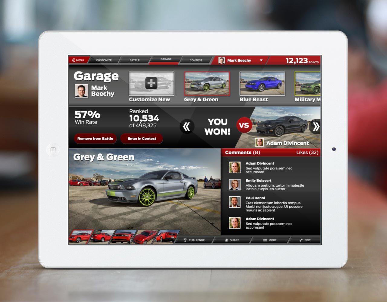 As Lead UX Designer and Artistic Director, I reimagined the UI for mobile-first interaction, ensuring a high-energy, visually immersive experience that stayed true to the Mustang brand.