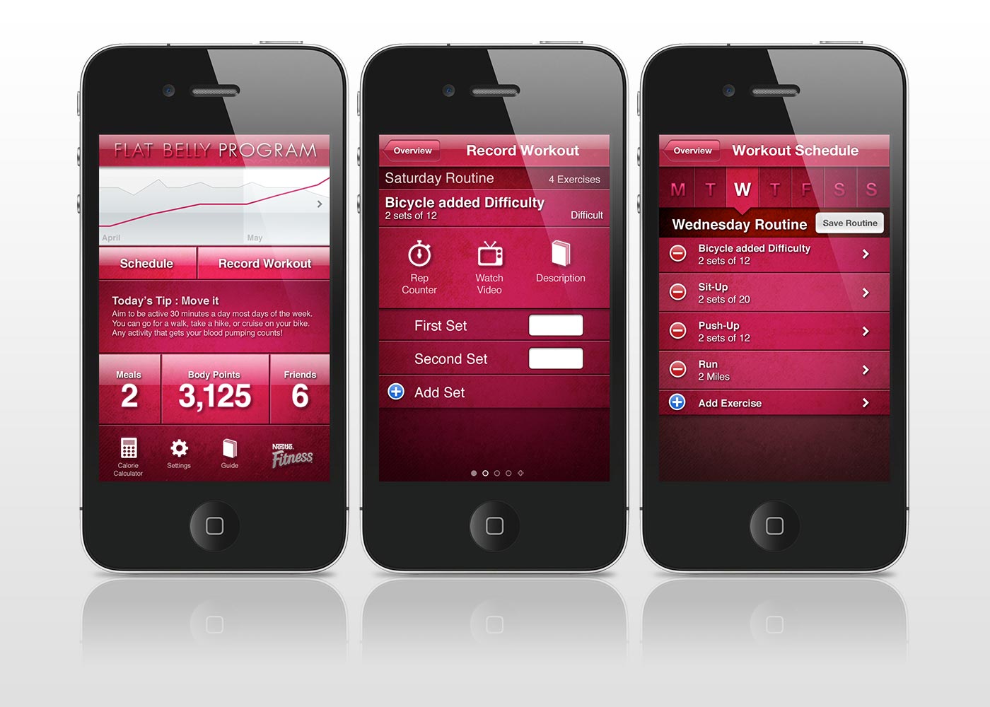 Nestlé Europe sought a set of mockups to present their “Flat Belly Program” app concept in a proposal bid. The goal was to create a visually engaging and functional model that demonstrated the app’s structure, user experience, and potential to stakeholders.